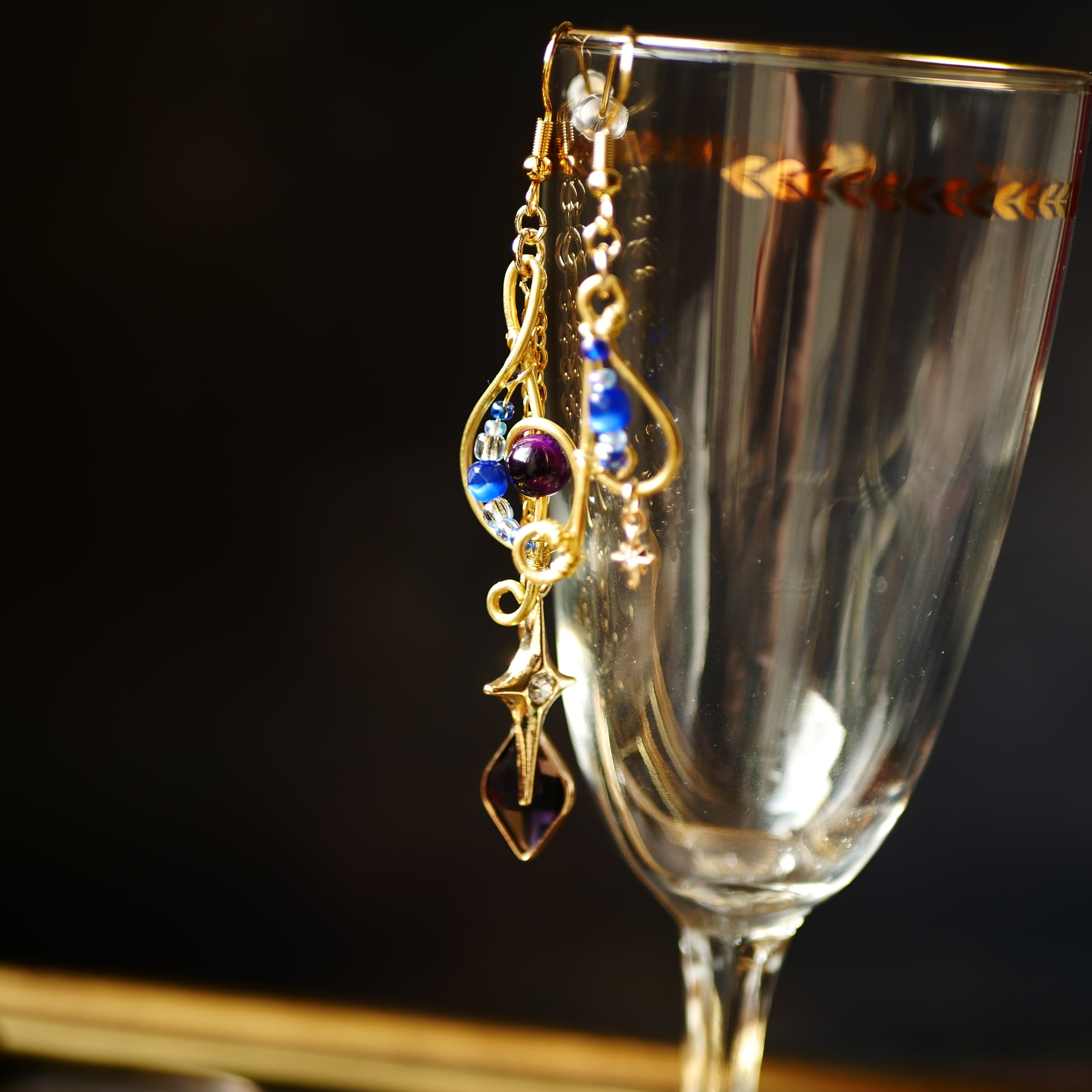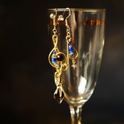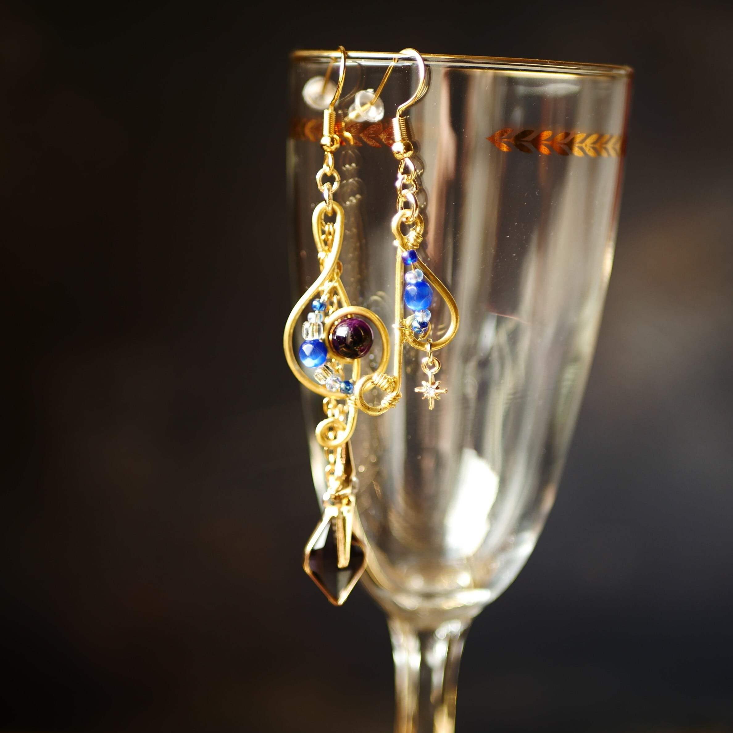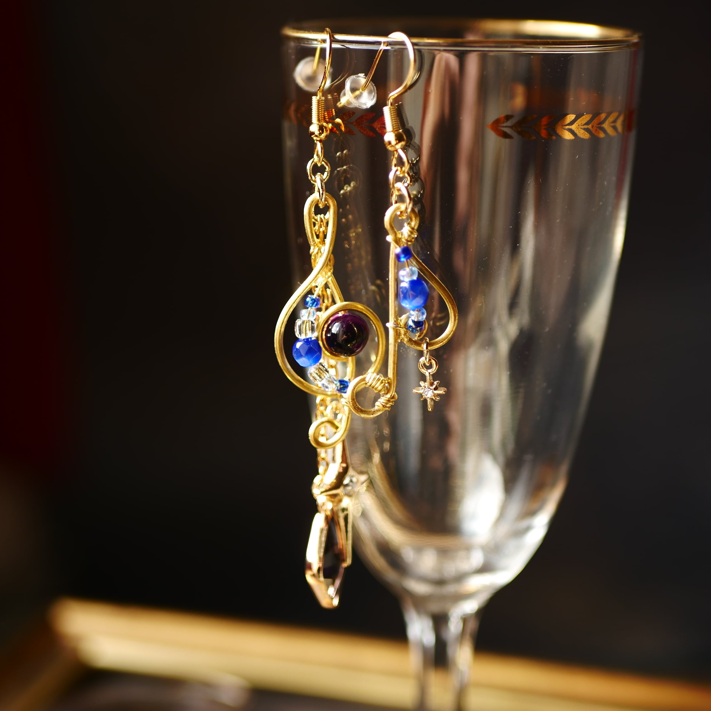 真鍮ワイヤーと天然石、ガラスビーズでデザインした音符の耳飾りです。