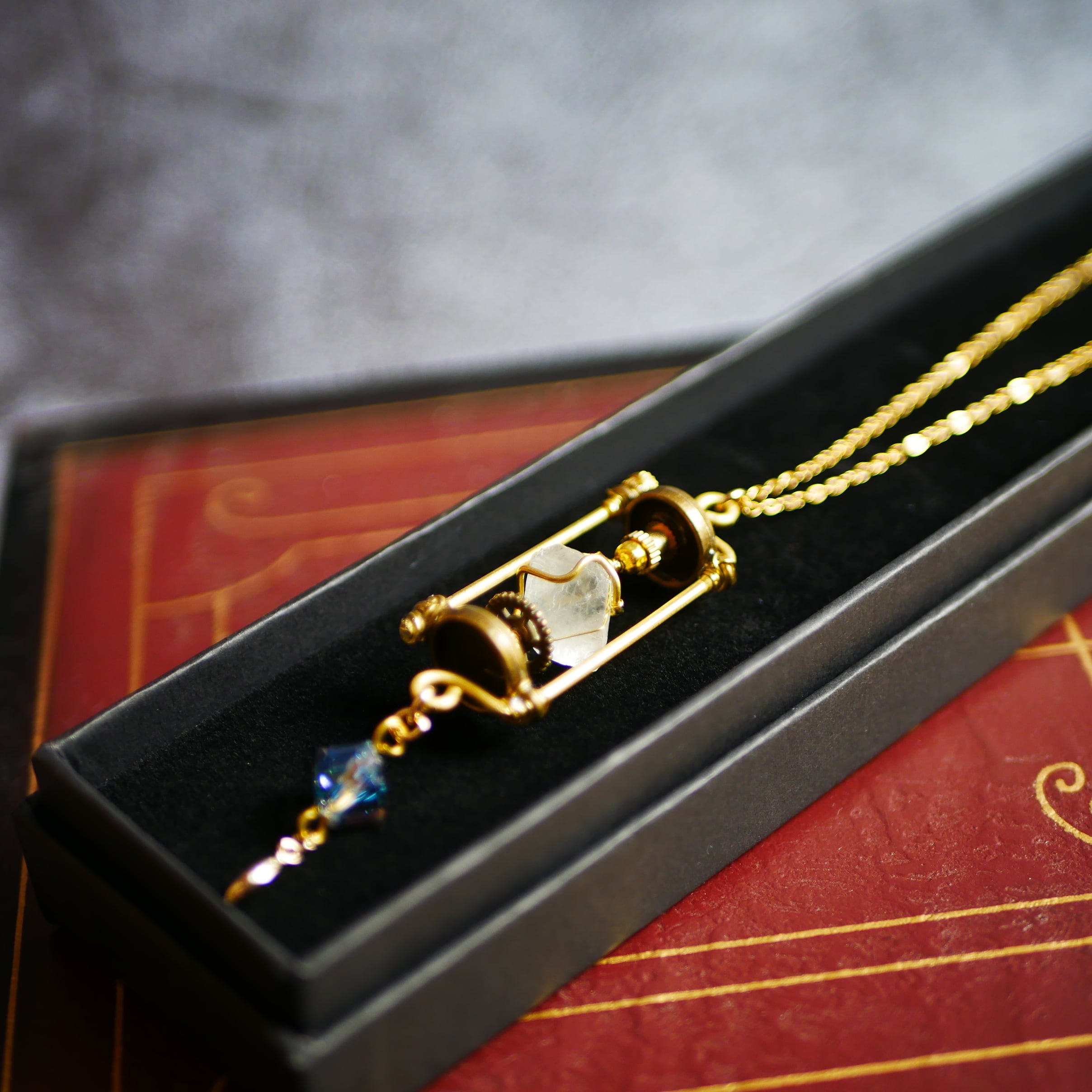惑星と歯車のチャームを飾ったおもちゃのような宇宙をイメージしました。