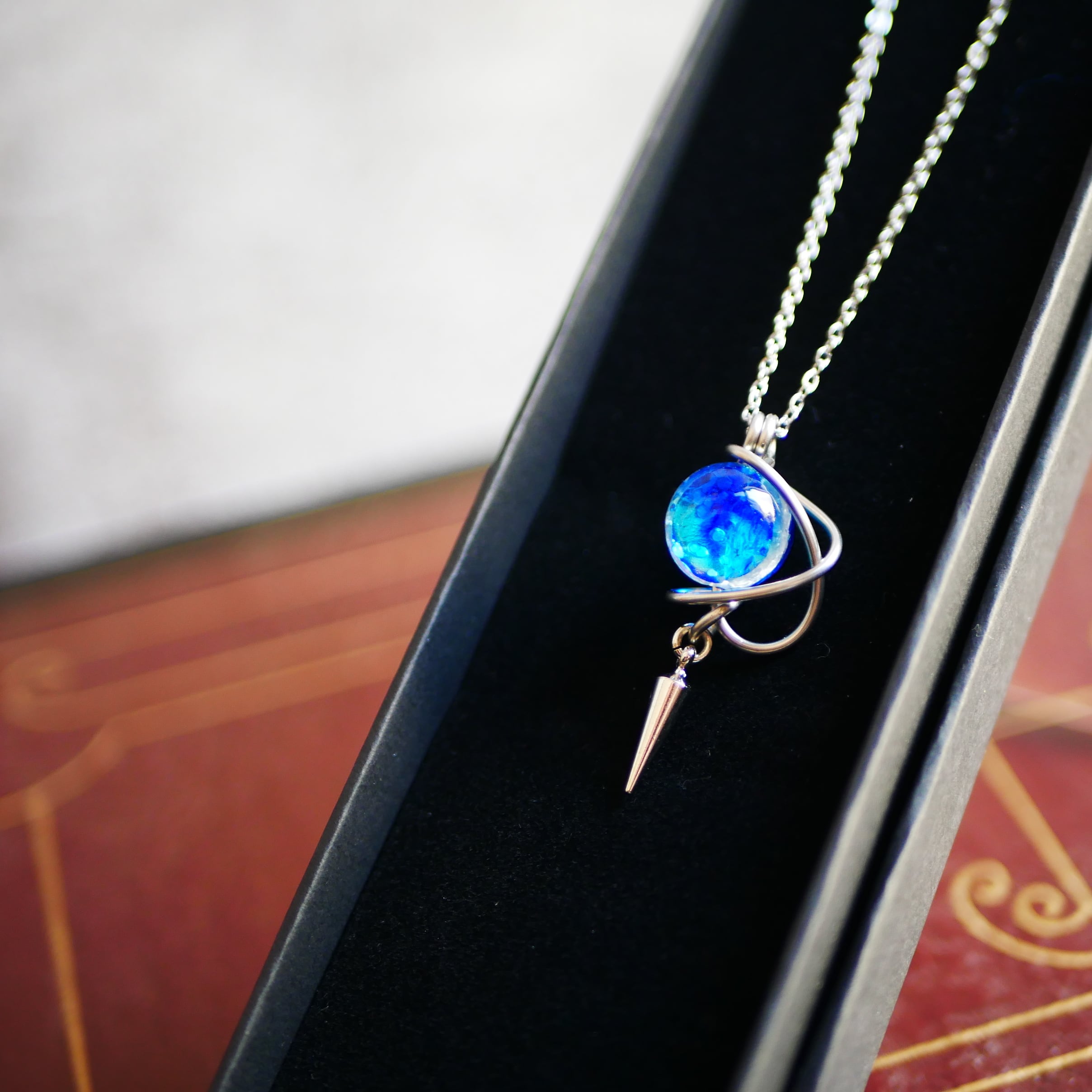 一つ星 シルバーカラー ステンレスネックレス オーシャンブルー ホタルガラス