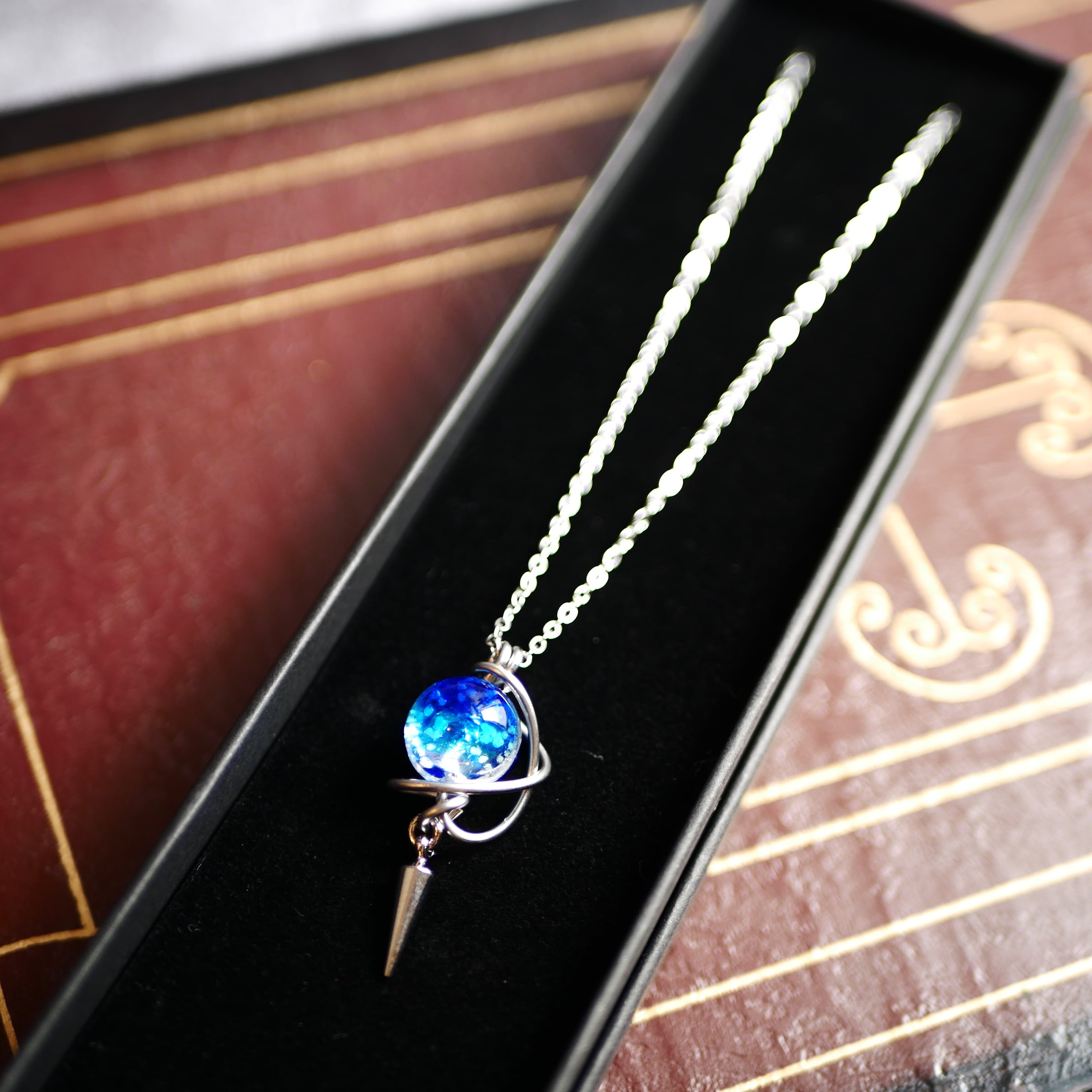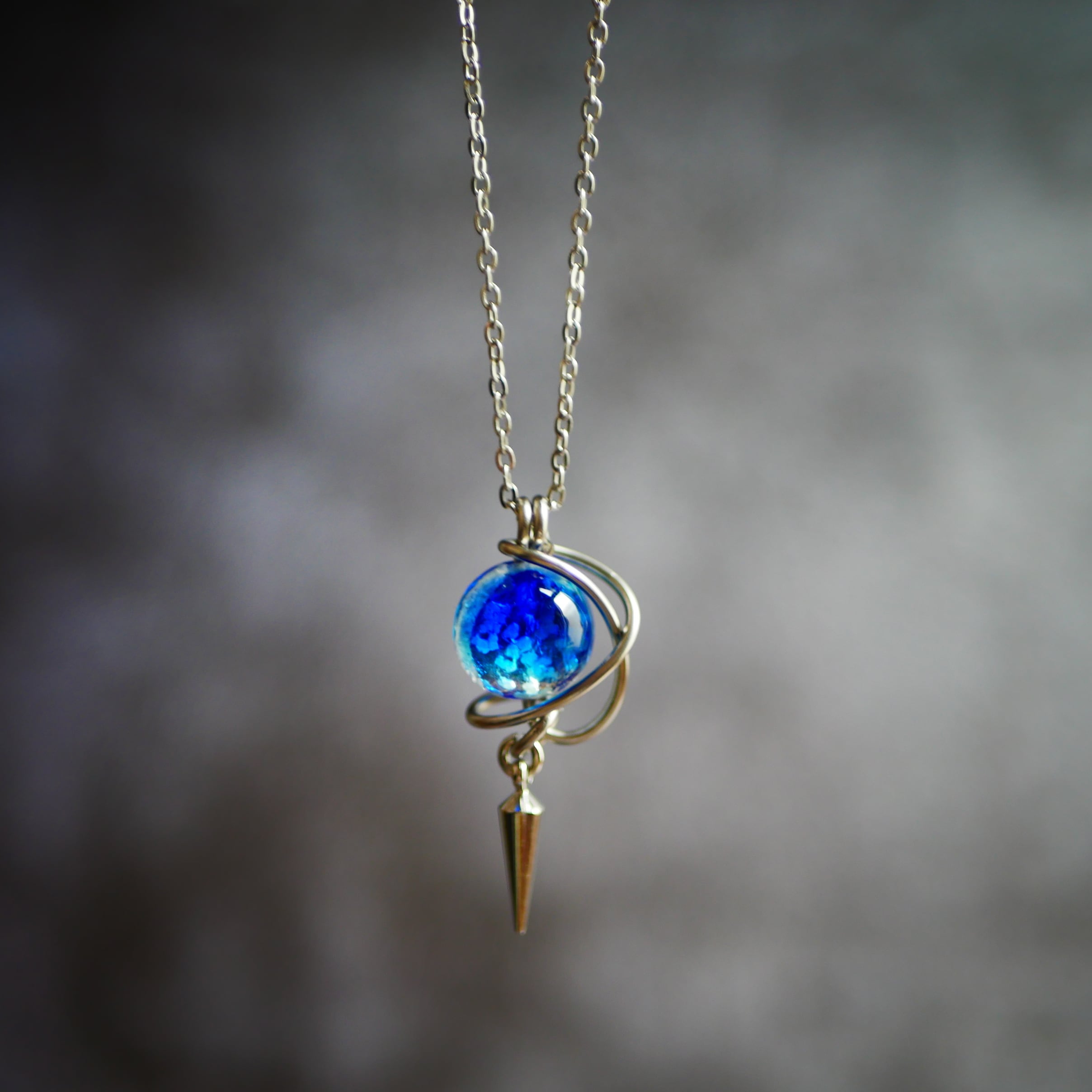 一つ星 シルバーカラー ステンレスネックレス オーシャンブルー ホタルガラス (h-003)