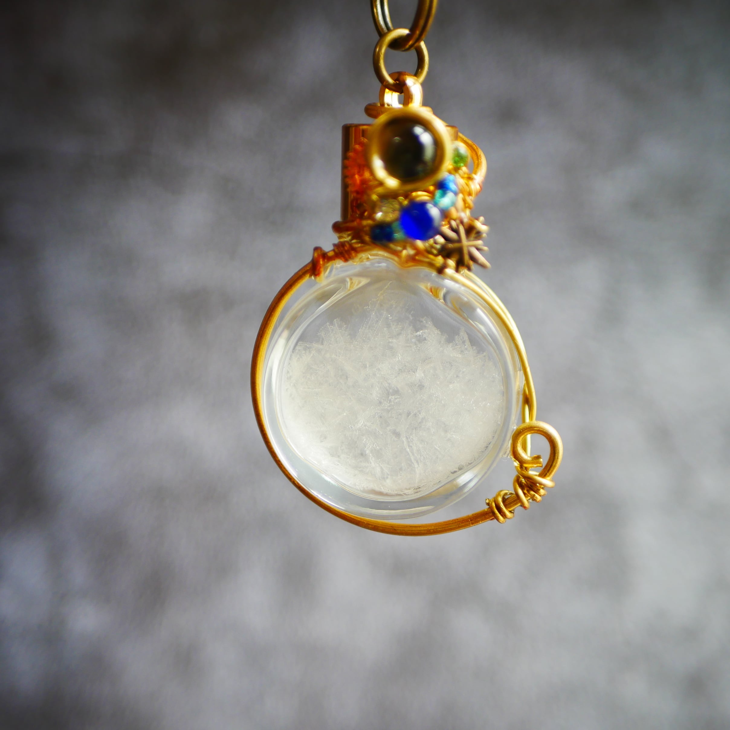 ガラス管に閉じ込めた液体は気温や天候によって結晶が変化し様々な表情を見せてくれます。
